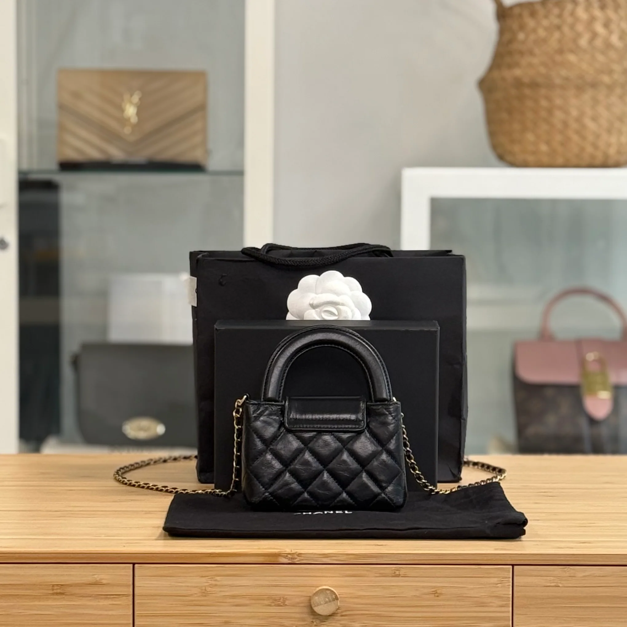 Despite its petite size, the Chanel Micro Kelly delivers maximum style impact. Its sleek top-handle design, delicate hardware, and versatile strap allow it to be worn as a crossbody or carried as a chic accessory for special occasions. The minimalist yet iconic aesthetic makes it a standout addition to any luxury collection.