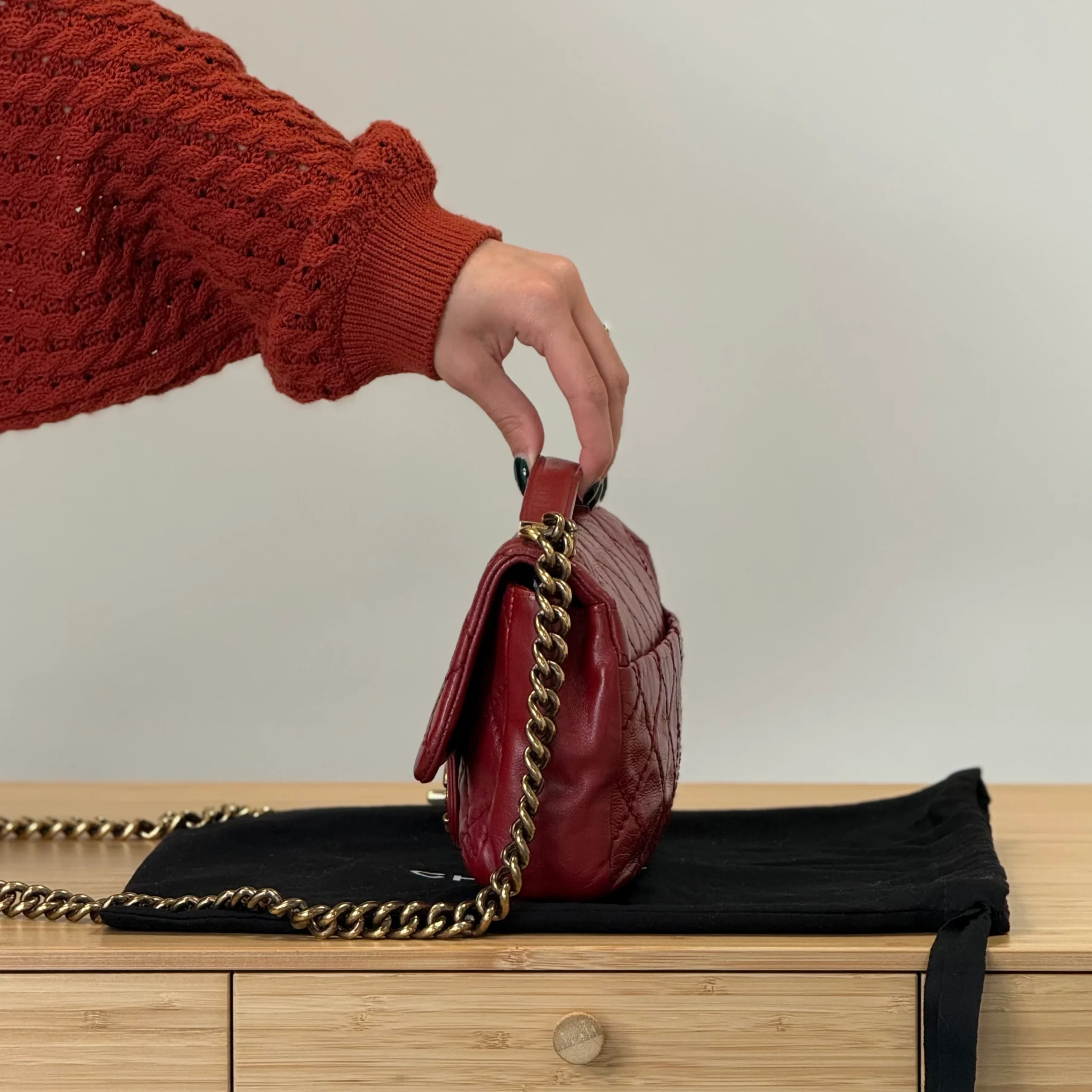 Fabric: Exterior-aged calfskin. Interior-leather. Strap-leather & chain