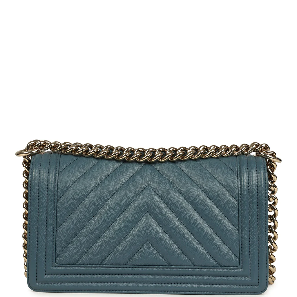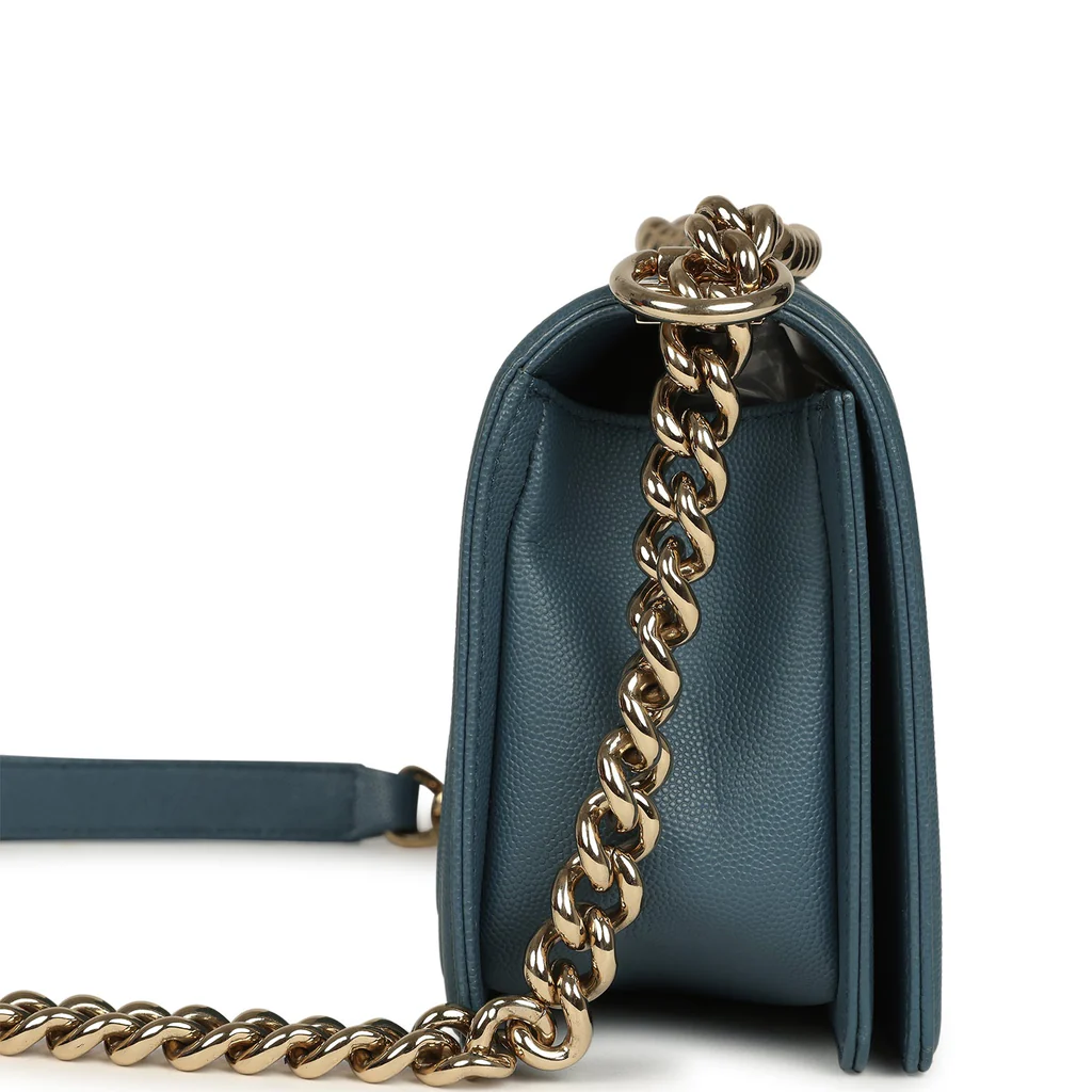 Chanel Medium Chevron Boy Bag Blue Caviar Light Gold Hardware