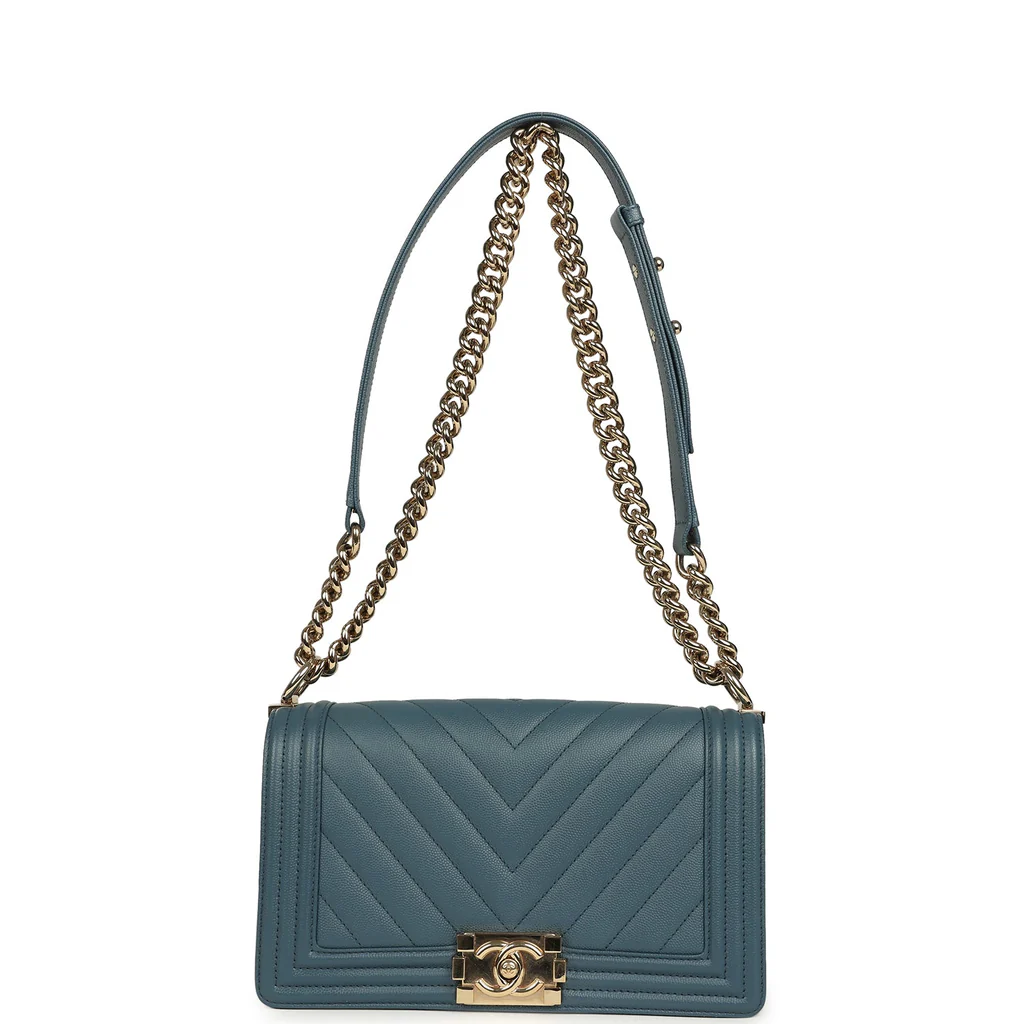 You're viewing: Chanel Medium Chevron Boy Bag Blue Caviar Light Gold Hardware $3,899.00