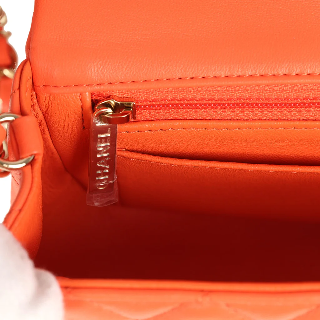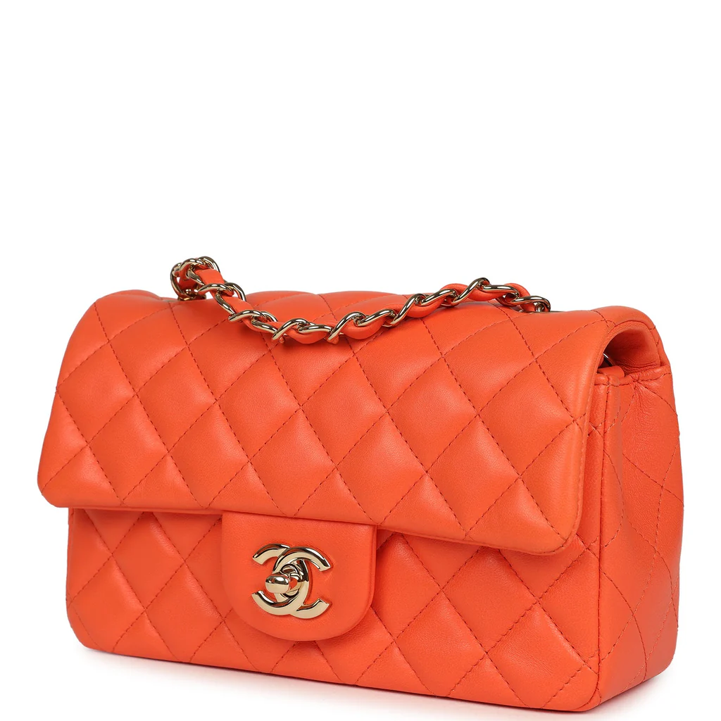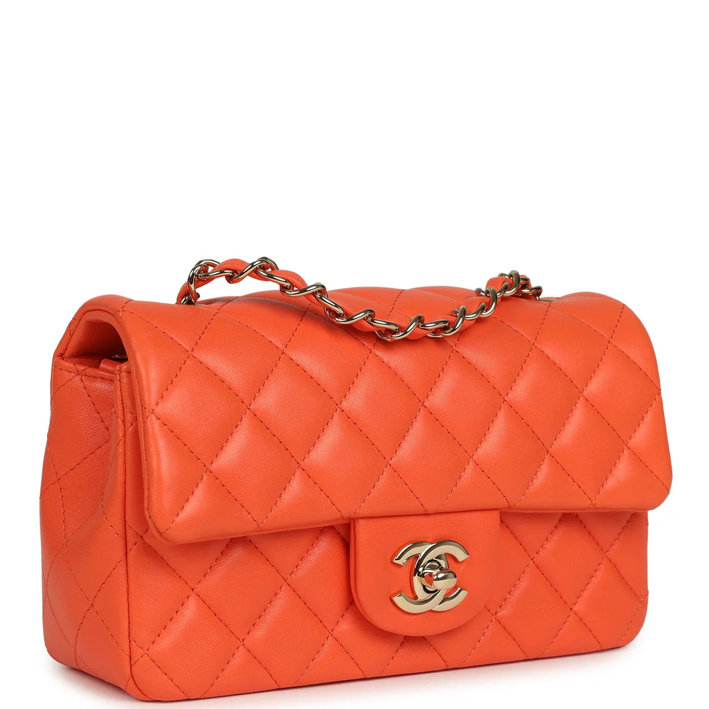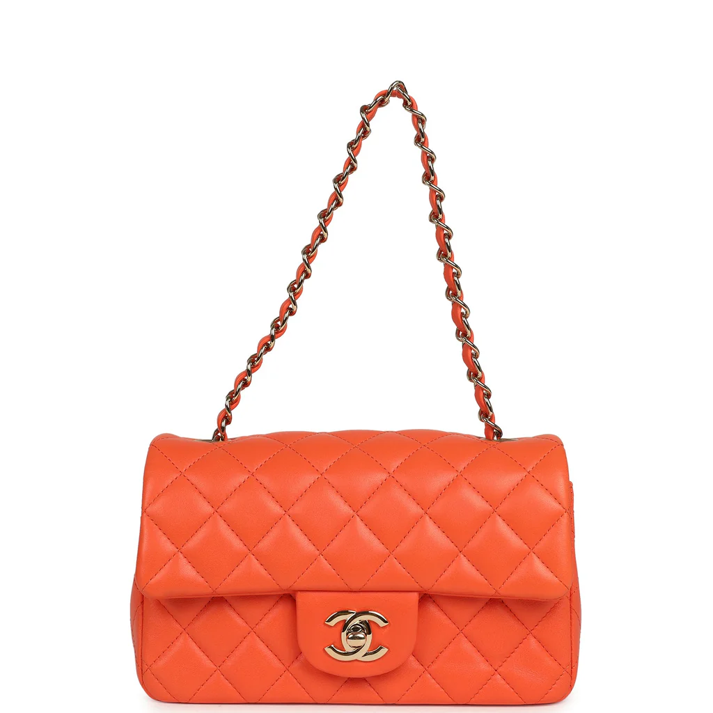 You're viewing: Chanel Mini Rectangular Flap Bag Orange Lambskin Light Gold Hardware $3,100.00