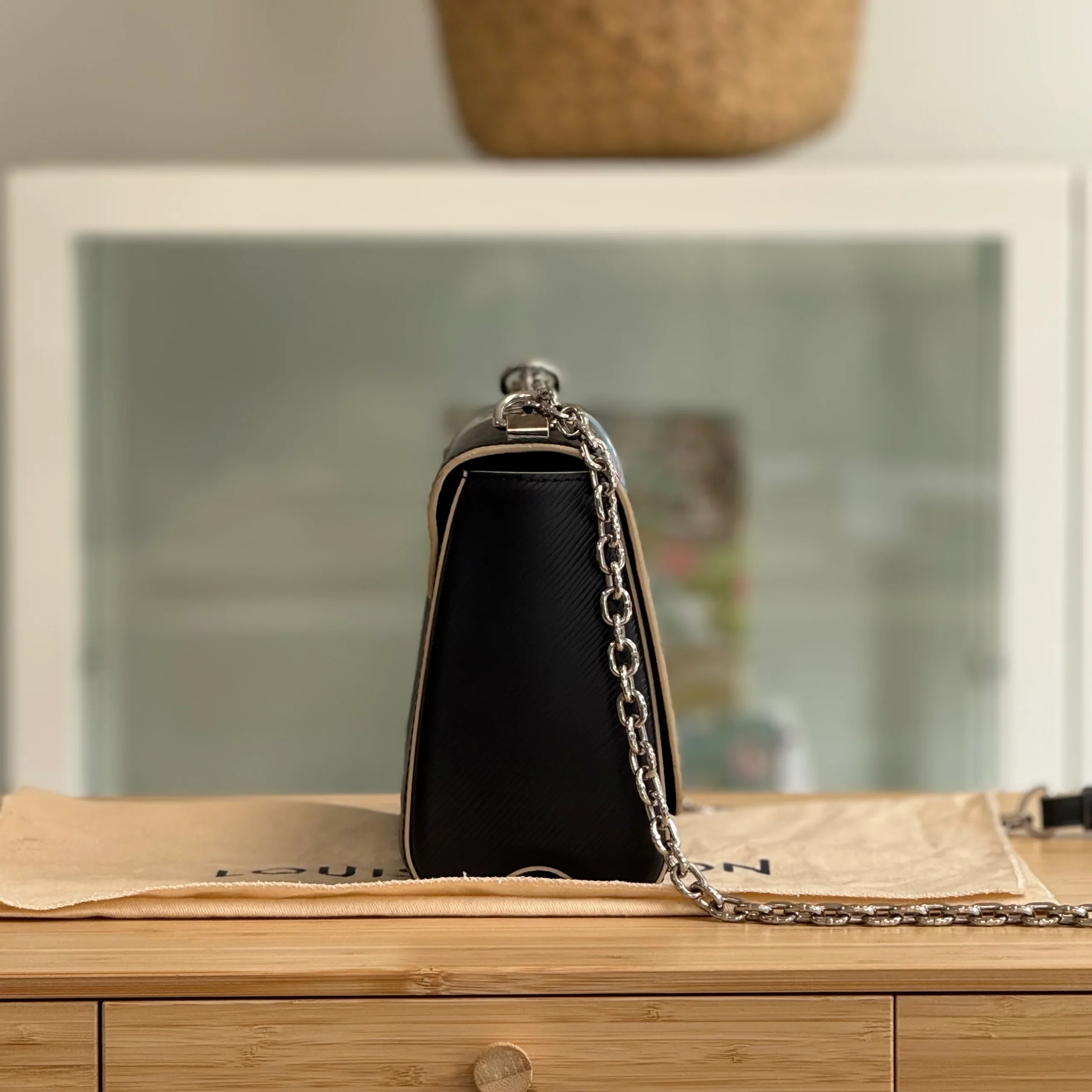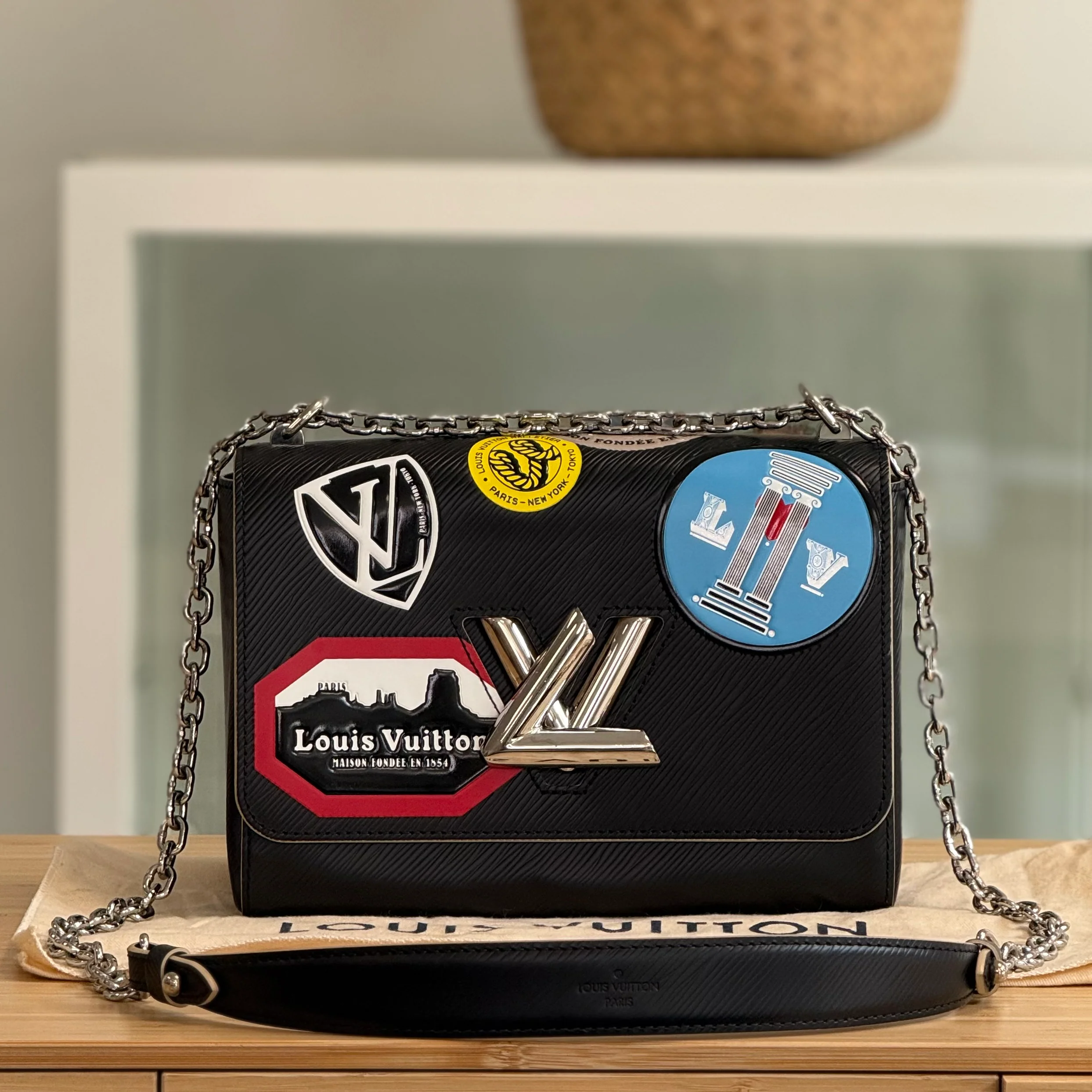 The Louis Vuitton Twist Chain MM “World Tour” is a standout piece that celebrates the spirit of travel and adventure. Designed with the signature LV Twist lock and adorned with playful patches and motifs, this bag offers a fresh take on a classic silhouette. Its structured shape, spacious interior, and versatile chain strap make it perfect for both day and evening wear. A true collector’s item, it embodies Louis Vuitton’s heritage with a contemporary twist.