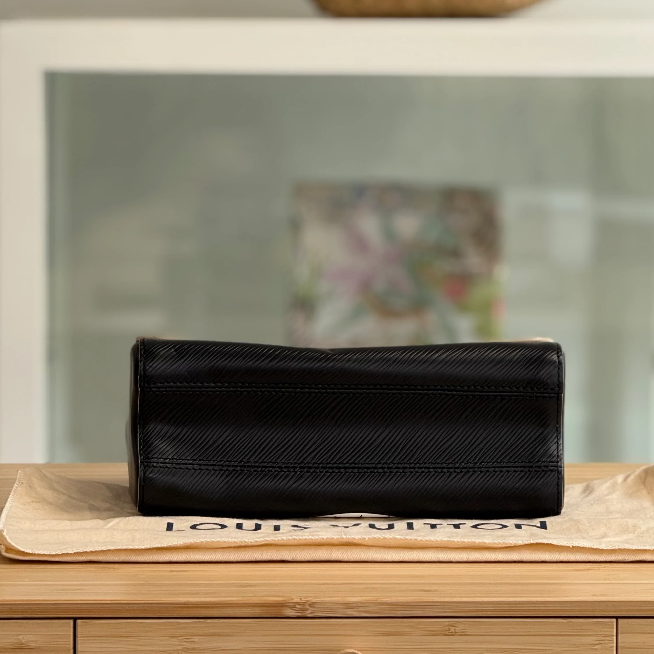 This Louis Vuitton Twist Chain MM World Tour has an adjustable strap and a flap closure with the LV Twist turnlock fasten. Inside there is 1 flat pocket and 1 card slot. The date code is FL2156.