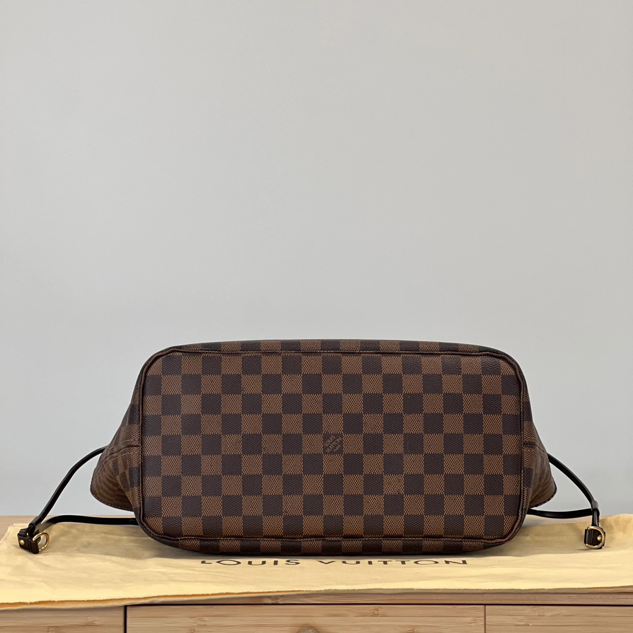 Description: This Louis Vuitton Neverfull in size MM has double top handles and adjustable side laces. It has a clip-fasten. Inside there is 1 zipped pocket. There is also a removable pochette, which has a zip-top closure and 1 flat pocket inside. The date code is GI0186.