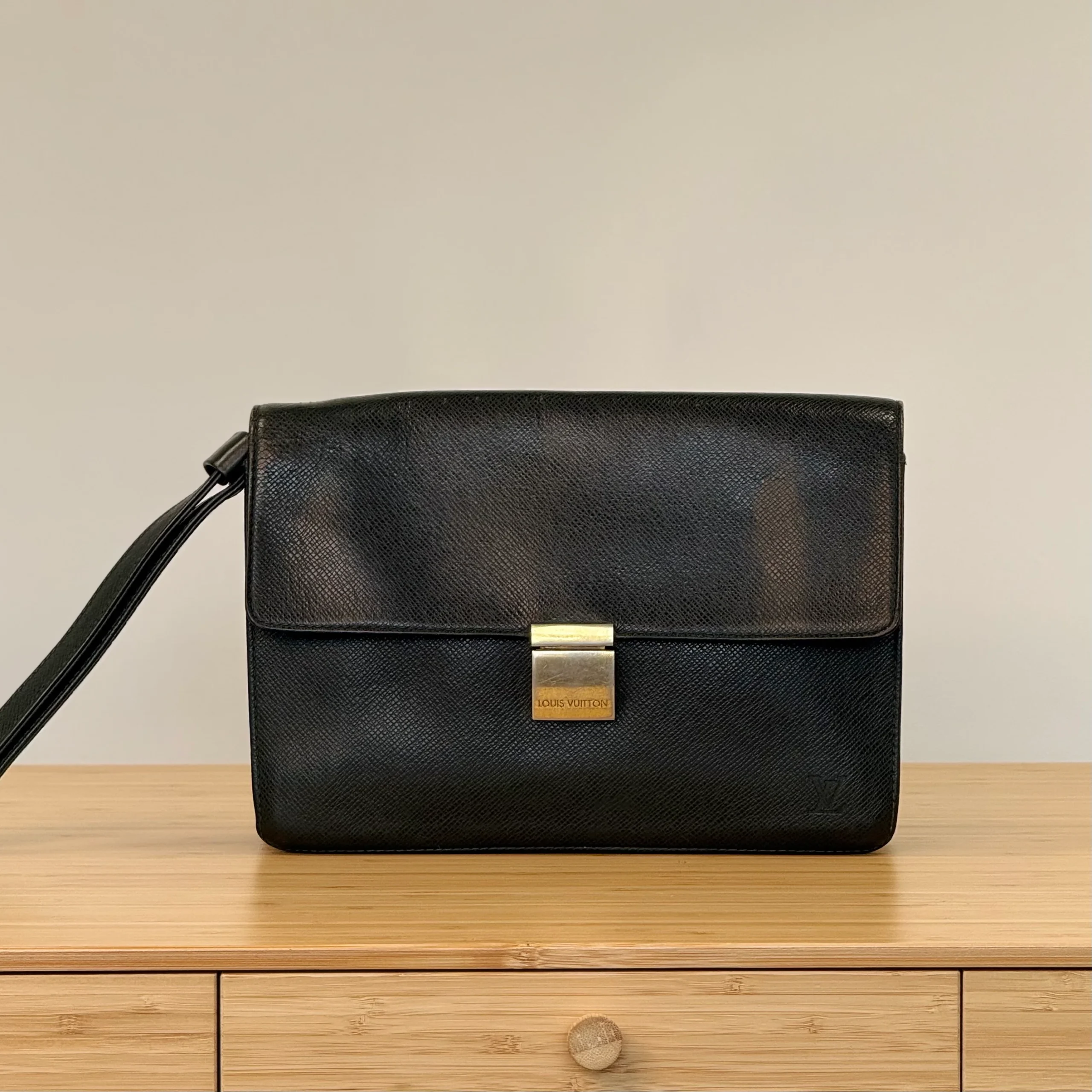 The Louis Vuitton Taiga Selenga Clutch is a sophisticated accessory designed for those who appreciate understated luxury. Crafted from durable Taiga leather, it features a refined texture and a sleek, minimalist silhouette that complements both formal and casual looks.